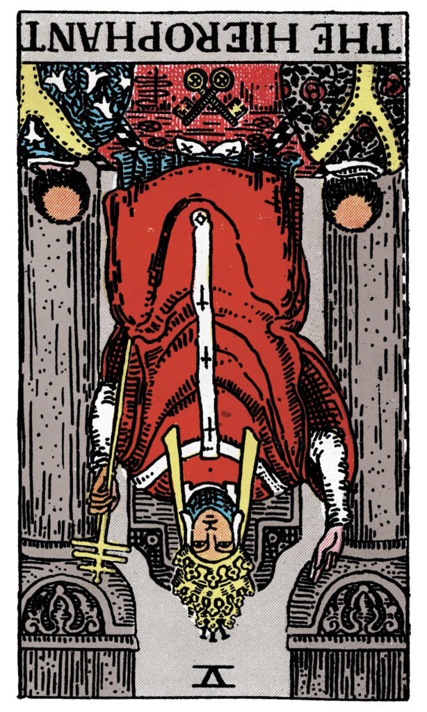4枚目(中央・下)のカードは「法王」(逆位置)。
